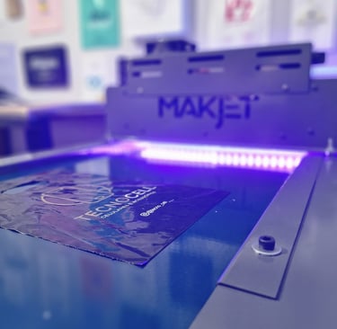 Nossa estrutura conta com tecnologia LED UV, que garante a cura instantânea da tinta, proporcionando maior aderência ao substrato, resistência superior à abrasão e um acabamento uniforme e de alta qualidade. Esse método também reduz significativamente o impacto ambiental, eliminando a emissão de solventes voláteis e otimizando o consumo de energia.